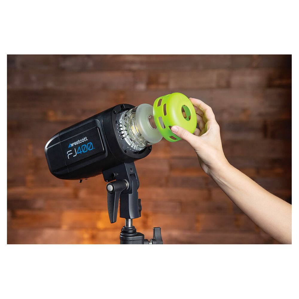 Add a pop of color or subtle effects to your photos with the FlexiGels for the FJ400 Strobe from Westcott, an 8-pack of silicone rubber color gels that slide over the strobe's glass dome. Durable and heat-resistant, the filters remain secured without tape or clips and work well with a variety of light modifiers. The included colors are red, orange, light orange (similar to CTO), yellow, green, blue, purple, and pink. FlexiGels are also compatible with third-party strobes that have a 5cm height x 8.6cm diameter glass dome and adequate ventilation hole alignment.