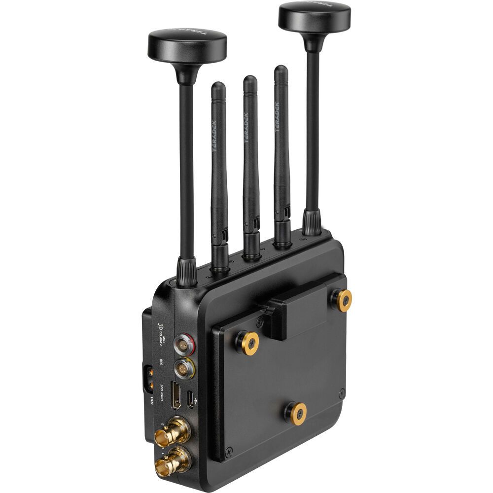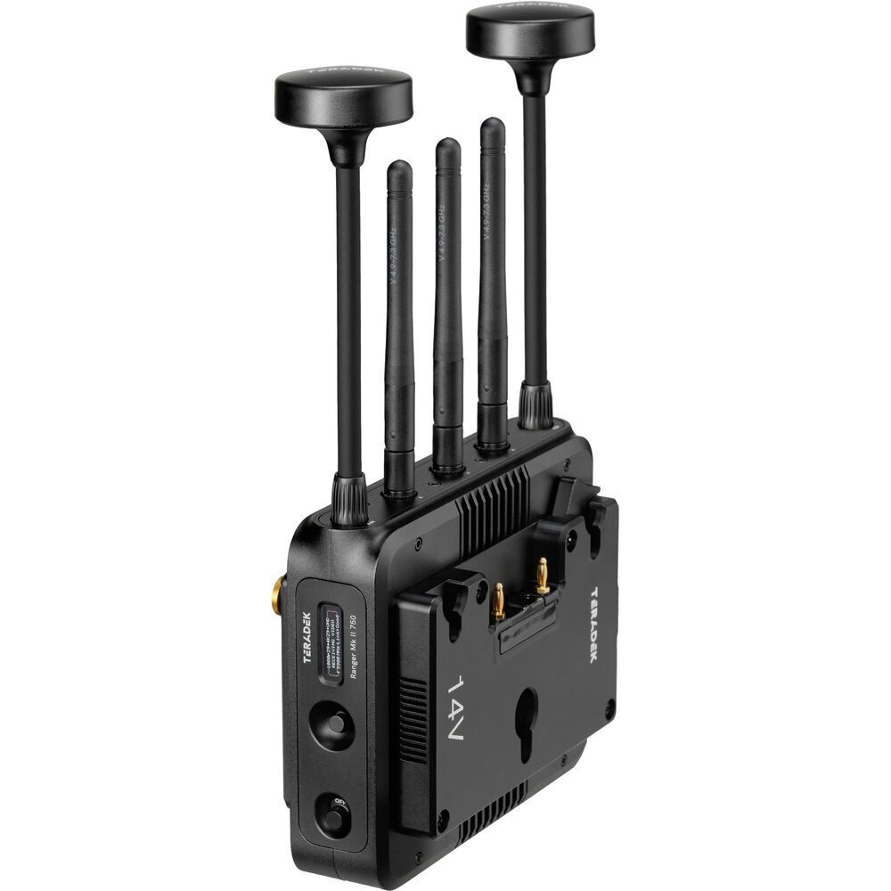 Transmit lossless 4K video up to 750'(228m) with the Ranger MK II 750 12G-SDI/HDMI Wireless Receiver from Teradek. Redesigned for broadcast, event, drone, and handheld applications, this receiver can receive up to 4K60 video over a wide 4.9 to 6.4 GHz wireless range, including licensed and unlicensed bands in the 6 GHz U-NII 5 spectrum, and it can output up to 4K60 video over HDMI or 12G-SDI with 10-bit HDR support. The receiver unit supports a powerful signal that can travel up to 750' line of sight. It also features five external antennas.