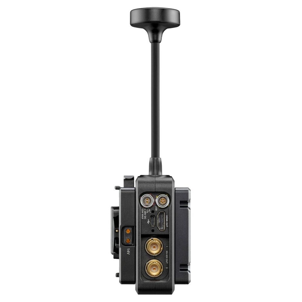 Transmit lossless HD video up to 750' with the Ranger Micro 750 3G-SDI/HDMI Wireless Receiver from Teradek. Redesigned for broadcast, event, drone, and handheld applications, this receiver can receive up to 1080p60 video over a wide 4.9 to 6.4 GHz wireless range, including licensed and unlicensed bands in the 6 GHz U-NII 5 spectrum, and it can output up to 1080p60 video over HDMI or 3G-SDI with 10-bit HDR support. The receiver unit supports a powerful signal that can travel up to 750' line of sight. It also features five external antennas.