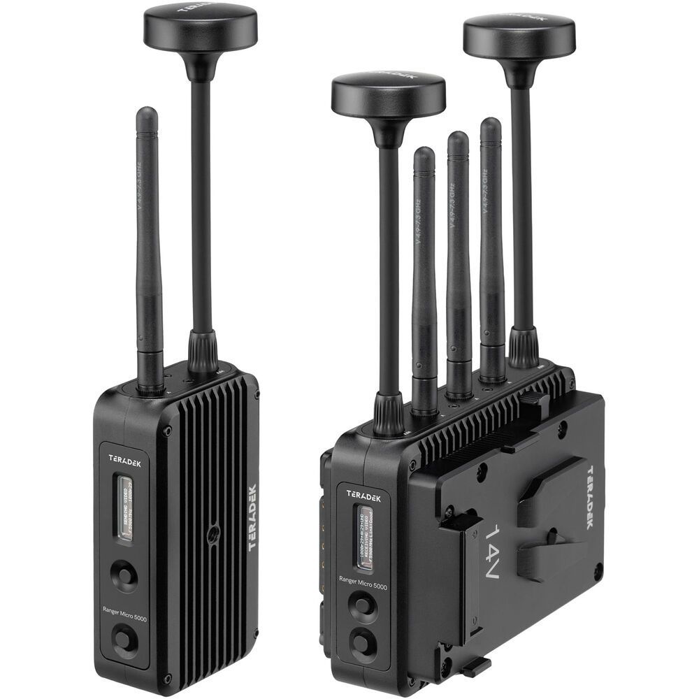 Transmit lossless HD video up to 5000'(1524m) with the Ranger Micro 5000 3G-SDI/HDMI Wireless Receiver from Teradek. Redesigned for broadcast, event, drone, and handheld applications, this receiver can receive up to 1080p60 video over a wide 4.9 to 6.4 GHz wireless range, including licensed and unlicensed bands in the 6 GHz U-NII 5 spectrum, and it can output up to 1080p60 video over HDMI or 3G-SDI with 10-bit HDR support. The receiver unit supports a powerful signal that can travel up to 5000'(1524m) line of sight. It also features five external antennas.