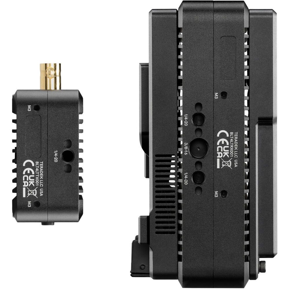 The unit is powered using a 2-pin DC input, and there are 1/4"-20 and M3 mounting threads to mount your transmitter on a variety of cameras, cages, or rigs.