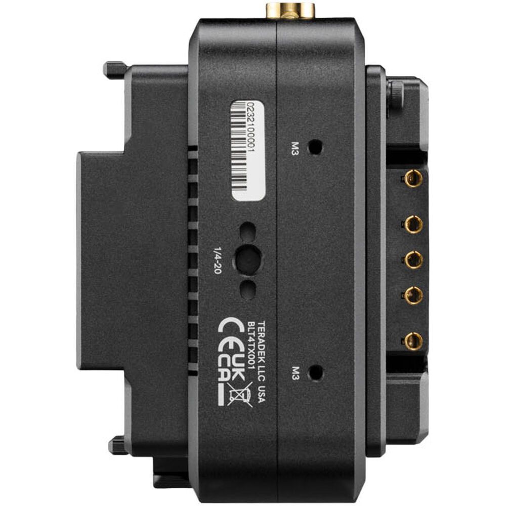 The unit is powered using a 2-pin DC input or the included V-mount battery plate, and there are 1/4"-20 and M3 mounting threads to mount your transmitter on a variety of cameras, cages, or rigs.