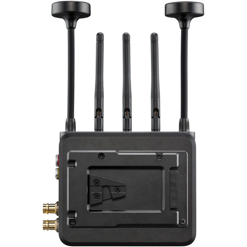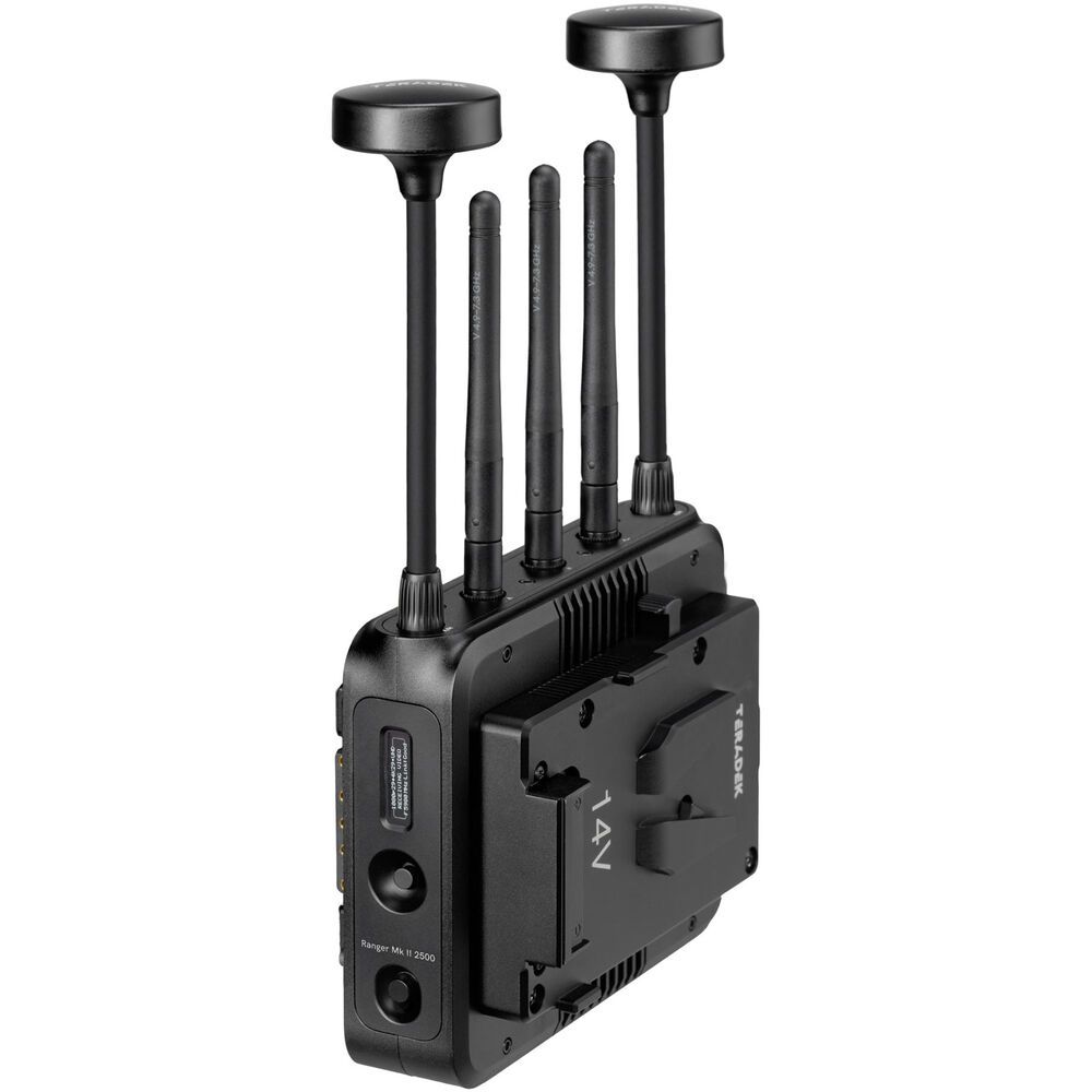 Transmit lossless 4K video up to 2500'(762m) with the Ranger MK II 2500 12G-SDI/HDMI Wireless Receiver from Teradek. Redesigned for broadcast, event, drone, and handheld applications, this receiver can receive up to 4K60 video over a wide 4.9 to 6.4 GHz wireless range, including licensed and unlicensed bands in the 6 GHz U-NII 5 spectrum, and it can output up to 4K60 video over HDMI or 12G-SDI with 10-bit HDR support. The receiver unit supports a powerful signal that can travel up to 2500'(762m) line of sight. It also features five external antennas.