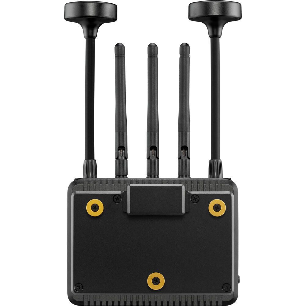 The set supports transmission of up to 1080p60 video to up to six receivers and features built-in AES-256 encryption protects your video from prying eyes. You can set up the set using a desktop Launchpad software application or the Launchpad app for iOS or Android that easily connects via Bluetooth 5, which both provide a spectrum analyzer, channel selection tools, and remote configuration. Each unit is powered using a 2-pin DC input and the receiver can be powered using the included Gold mount battery plate.