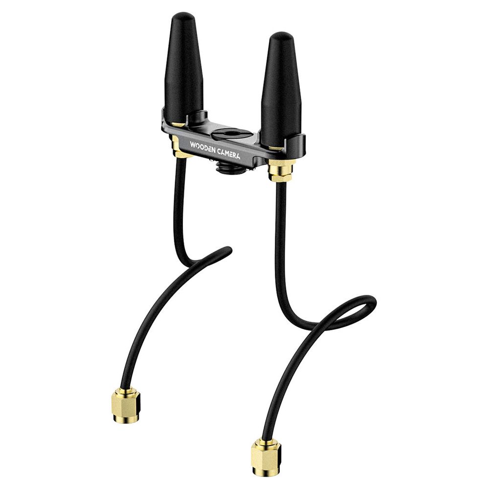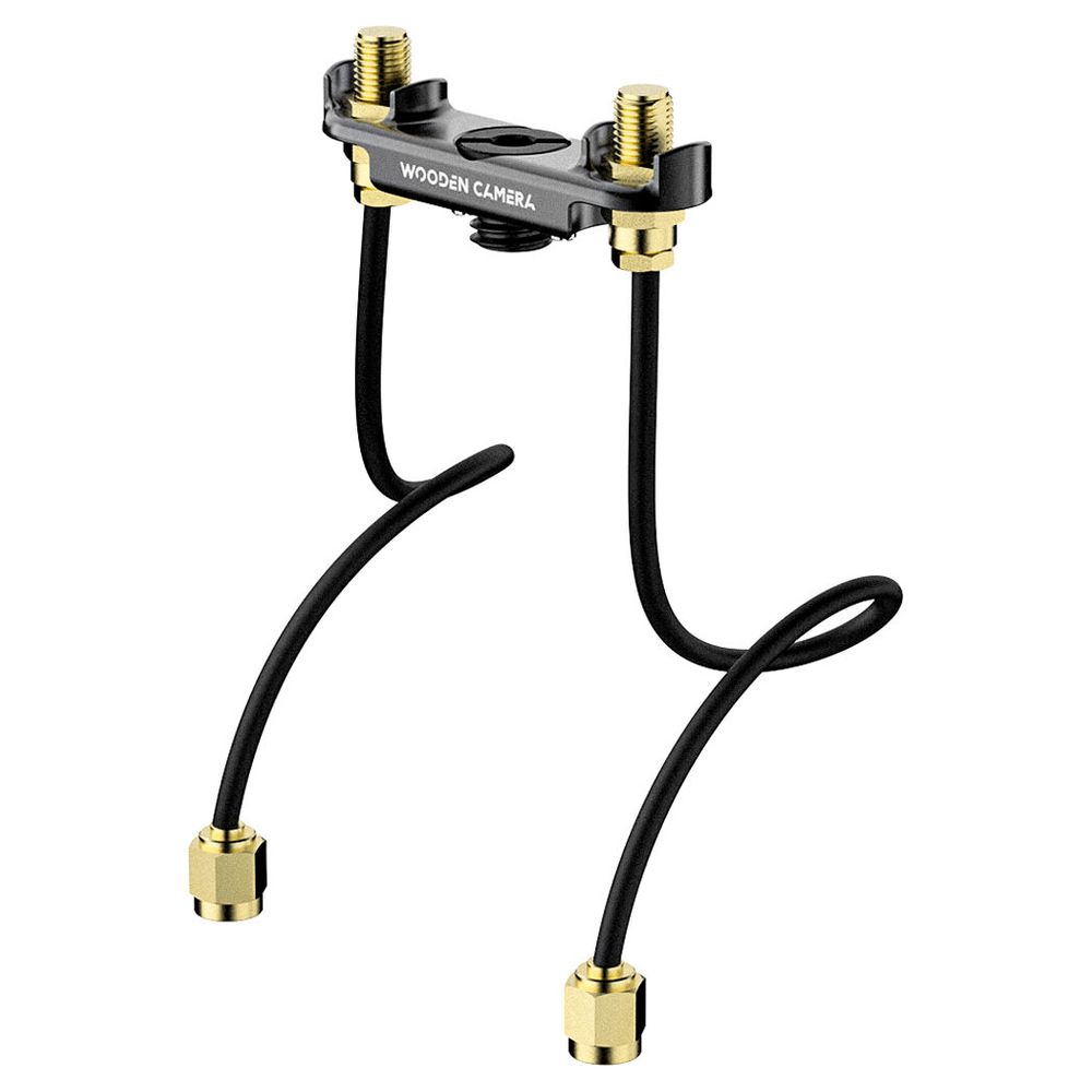 Extend your ARRI ALEXA 35 two back antennas for better wireless reception with this Antenna Relocation Bracket from Wooden Camera. This bracket mounts on top of the separately available Ultra Handle and provides two cable extensions for the original Wi-Fi antennas to mount on top of the handle, improving your reception and freeing up mounting space on the back of the camera.