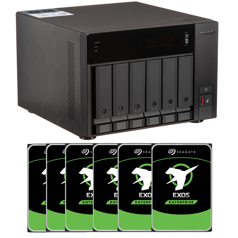 QNAP 6-Bay TVS-H674-I3-16G + 96TB Seagate Exos 6 x 16TB