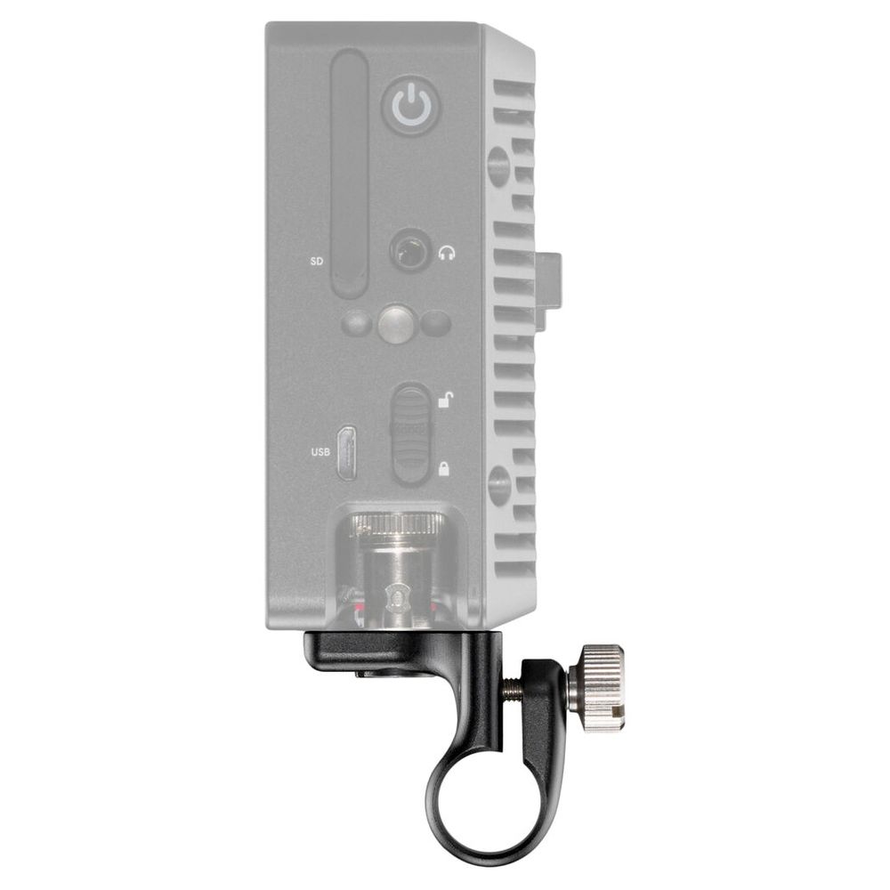 The arm features a 15mm rod clamp that mounts onto a separately available standard 15mm rod, allowing the monitor to rotate. A rubber pad is included to allow the mount to fit other third-party monitors that do not feature locating holes.