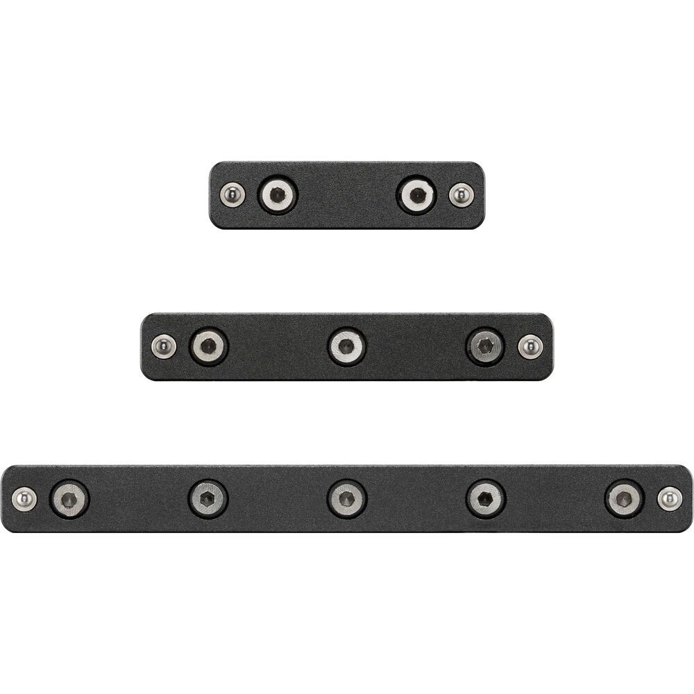 Quickly mount and unmount a variety of accessories onto your camera rig using this Mini Accessory Rail Kit from Wooden Camera. This kit includes 100, 61 and 41mm long movable accessory rails that can mount onto separately available Wooden Camera Accessory plates using the included low-profile captive screws.