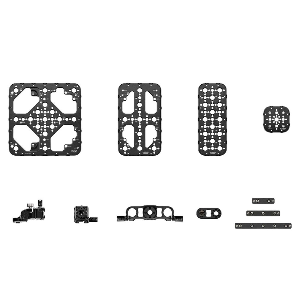 Add a complete mounting system to your camera rig using this Full Accessory Plate System from Wooden Camera. The accessory plate system includes a variety of durable aluminum plates that provide different size plates, 1/4"-20 and 3/8"-16 threads, 15mm rod mounts, mini rails, and mini rail clamps.