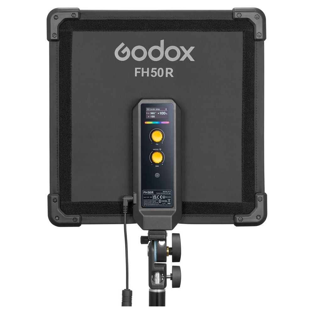 A lightweight, flexible RGB light panel built to bend without breaking, the FH50R RGB LED Flexible Light Panel from Godox excels at lighting narrow and irregular spaces and objects and, with its 1/4"-20 thread, has broad compatibility with other studio equipment. The light has a color temperature range between 2800-10000K and hue and saturation adjustment from 0 and 360° and 0 and 100%, respectively, all with a high color accuracy of CRI/TCLI 96. Fourteen total light effects come preinstalled and include RGB Cycle, Party, Flash, Lightning, Cloudy, Broken Bulb, Television, Candle, Fire, Fireworks, Explosion, Welding, Police Car, and SOS. The light features wireless control options via Bluetooth and the Godox Light app and an optional 2.4G wireless remote control. Onboard, local control is also available.