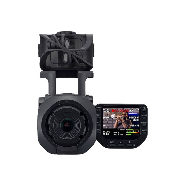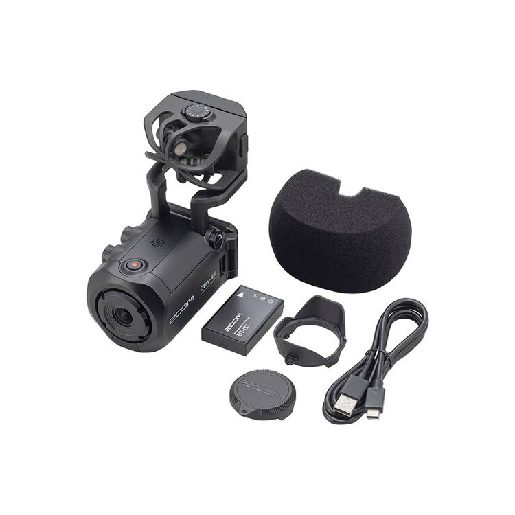 A wide-angle 150° lens with five field of view settings combines with adjustable brightness and selectable lighting presets to enable striking visual impact, whether run-and-gun shooting outside on a sunny day or filming a band's performance in a mood-lit venue. On the audio side, the Q8n-4K features dual XLR mic/line inputs with phantom power—great for accommodating professional external mics or the main outs from a mixing console—and an X/Y stereo condenser mic capsule that can be swapped for a number of separately available Zoom mic capsules.