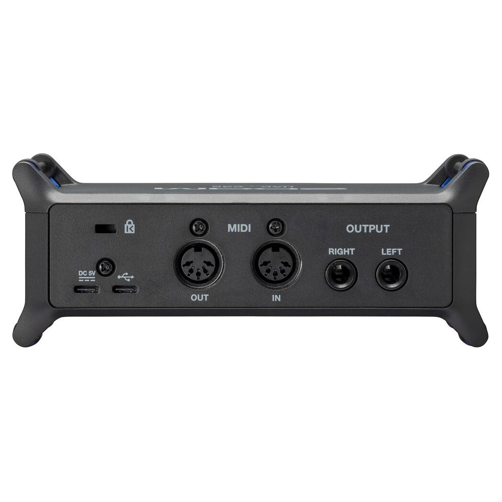 - Two XLR-1/4" combo inputs (mic/line/Hi-Z), headphone output, L/R TRS outputs