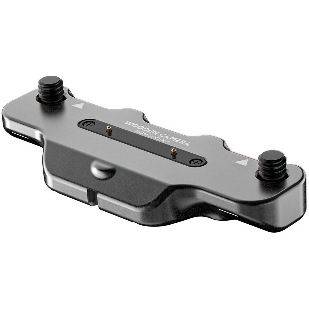 The Top Cheese Plate securely mounts to the KOMODO® or KOMODO-X™ using two ¼”-20 screws with anti-twist pins and adds seven ¼”-20, anti-twist mounting points. The plate connects directly to the top of the camera, allowing the contact pins to pass Run/Stop connection through the plate.
