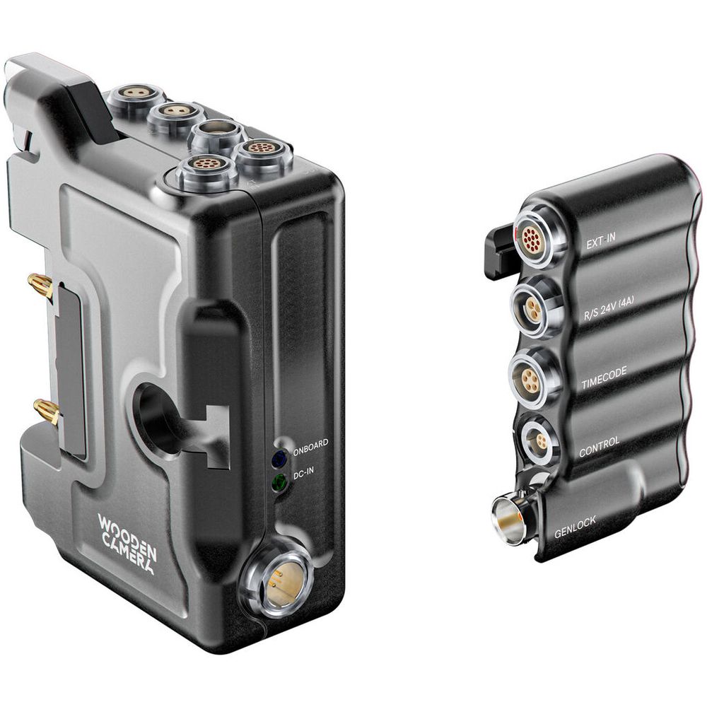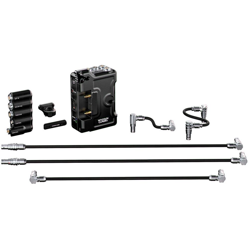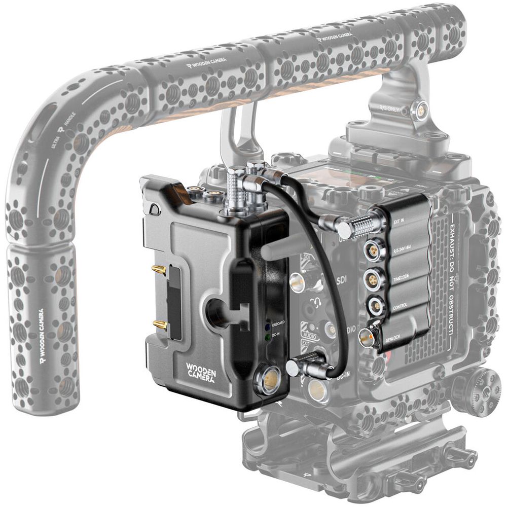 This System includes the D-Box®, B-Box, cables, and mounting options to attach the B-Box to the Rear Cage. The D-Box® offers hot swap abilities when power is connected to the DC-In and an on-board battery. There are additional 12V 2-pin, a D-Tap port, and a 3-pin 24V power option. When connected to the EXT port of the camera, Run/Stop is enabled on both the D-Box and the B-Box. The B-Box has eight M2.5 threaded holes for additional accessory mounting like Accessory Rails, and Bolt-On Plate Adapters. Mounting options included with the B-Box are one 40mm Accessory Rail that is compatible with the Rear Cage mini clamp mount and a Bolt-On 3/8-16 Accessory Mount.