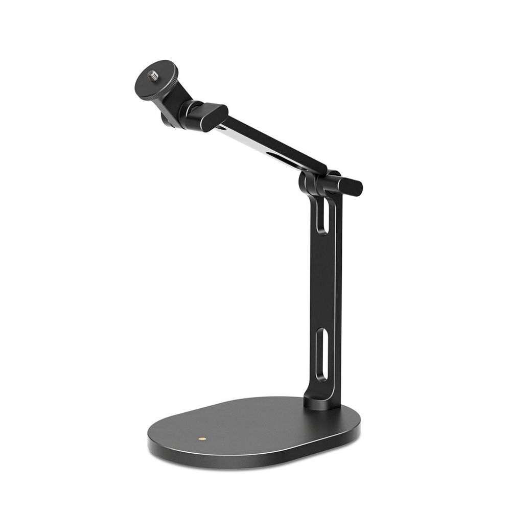 The Rode DS2 is a compact desktop studio arm designed for quiet and flexible microphone positioning in podcasting spaces, broadcast radio studios, voiceover studios, and similar environments. The DS2 features a heavy base designed to balance and support microphones weighing up to 900g, so there's no need for clamps or mounting equipment. The boom arm offers two adjustable pivot points that extend up to 15" vertically, allowing you to easily position your mic for optimal results. Cable management guides are provided to keep your setup neat and tidy. A 3/8" to 1/4" thread adapter is also provided, allowing you to mount a wide range of different screw threads.