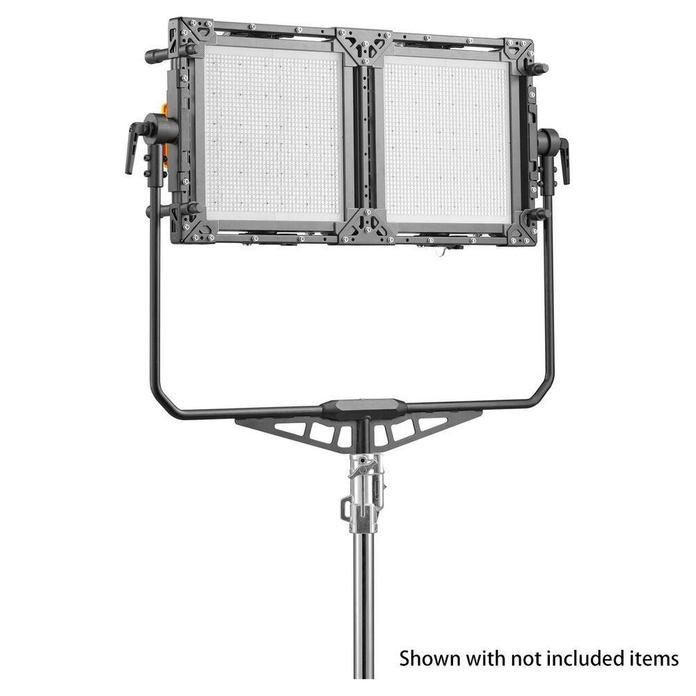 This 2-Light Bracket from Godox is designed to mount up to two P300R or P600Bi LED light panels together in a robust frame. Designed for filmmakers and lighting technicians who want a single frame for their lighting setup, this bracket combined with two separately available P300R or P600Bi fixtures allows for a maximized light output. This frame also saves you space on set by letting you mount the panels on a single optional stand.