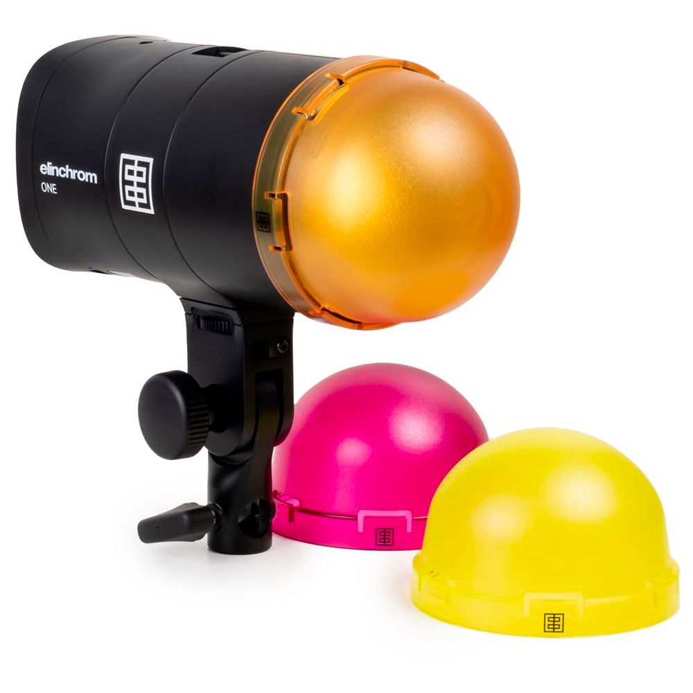 The OCF Gel Dome Kit includes 6 coloured Diffusion Dome. They serve double duty as both a coloured modifier producing softer light with an even spread to use with other accessories and a protective, polycarbonate cover for Elinchrom Off-Camera flashes with unconcealed flash tubes.