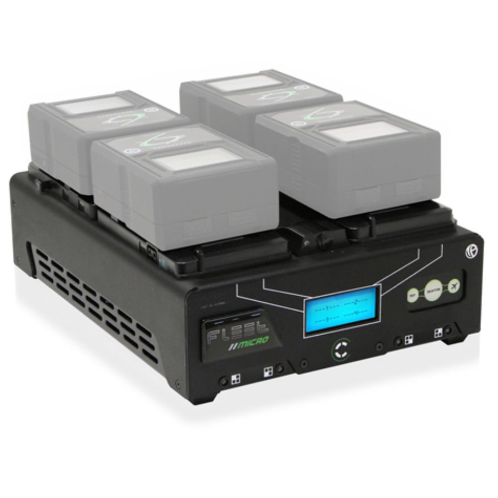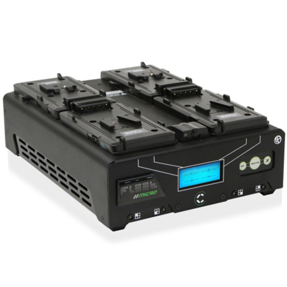 The Fleet intelligent series is also the most cross-compatible, able to address not only CoreSWX battery packs but those offered by RED, Anton/Bauer, and many more. With this additional charge compatibility, it provides piece of mind that whether you’re on location with multiple crews, charging legacy packs, or your rental Fleet, this Fleet series has you covered. Once the battery pack is connected, the Fleet Intelligent Series chargers first determines the packs’ chemistry and then make and model to properly charge the pack to optimal capacity. The chargers can simultaneously and automatically do this for up to the 4 packs connected via a microprocessor driven circuit design.