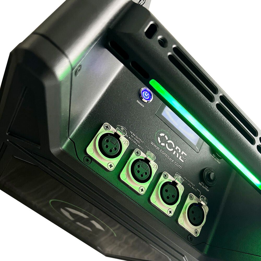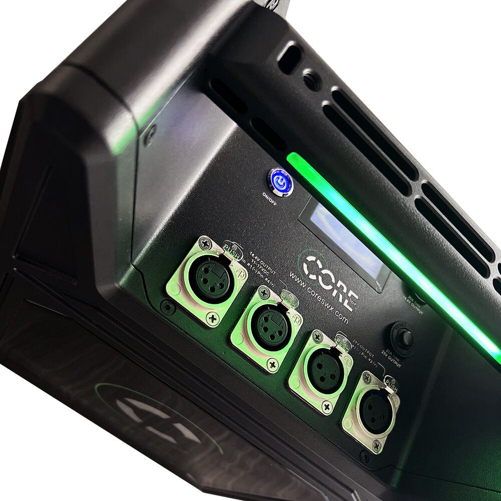 The Maverick Battery Block from Core SWX is designed to power all your lighting and camera needs in high-demand situations that come with filming on set. Sustaining up to a 20A draw on both of its 14 and 28V outlets simultaneously, the Maverick is built to provide you with professional power options. For flexible compatibility options, the outputs on this mobile power station include two 4-pin XLRs, two 3-pin XLRs, and two D-Taps for auxiliary devices, as well as a USB output for charging mobile devices that doubles as a firmware upgrade port. NiMH cells ensure longevity and travel ease.