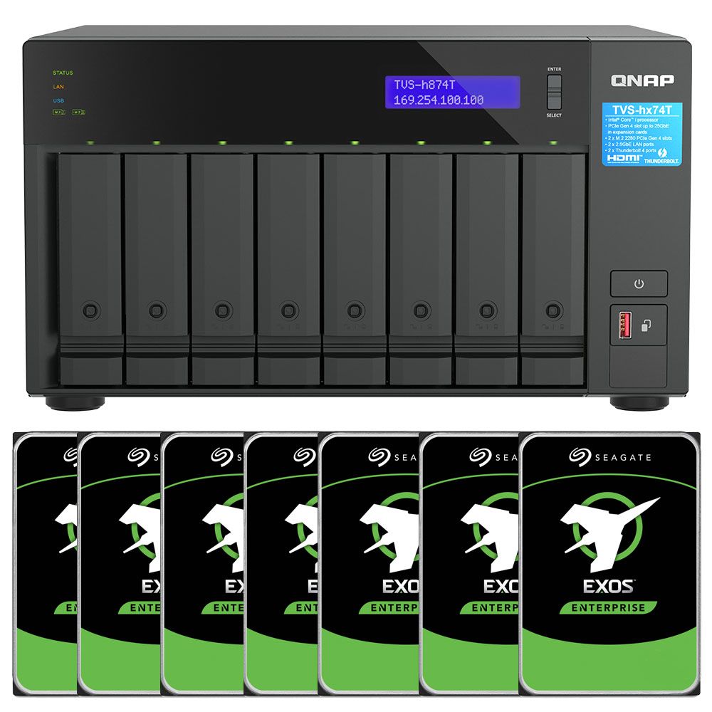 Qnap 8-Bay NAS Thunder Bolt TVS-H874T-I7-32G + 80TB Seagate Exos Drives