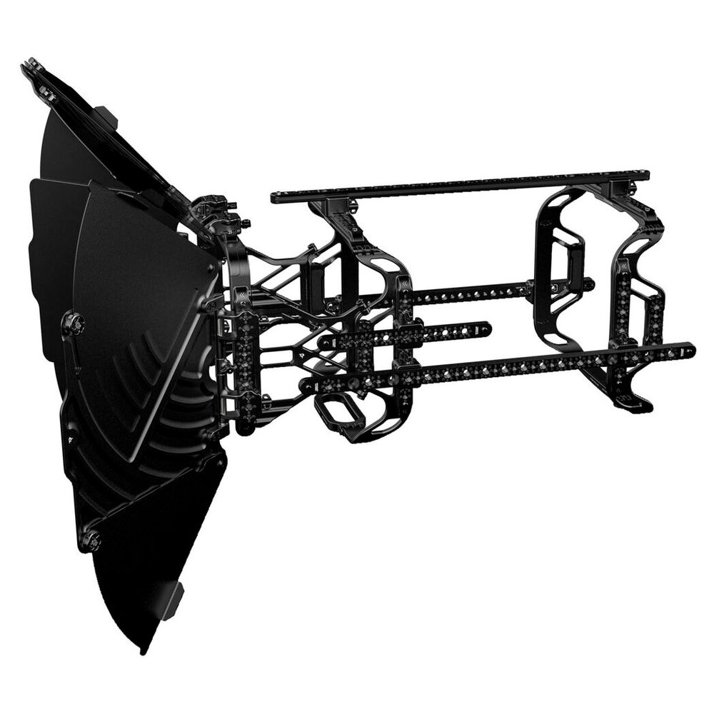 The Flag Cage Extension from Wooden Camera allows you to mount separately available flags onto the Fujinon Duvo HZK 25-1000mm box lens to protect from glare and flaring into the lens. The extension mounts onto the front top and sides of the lens using four 1/4"-20 screws and provides multiple NATO rails to mount flags around the lens opening. Each rail also features multiple anti-twist accessory threads for additional mounting options.