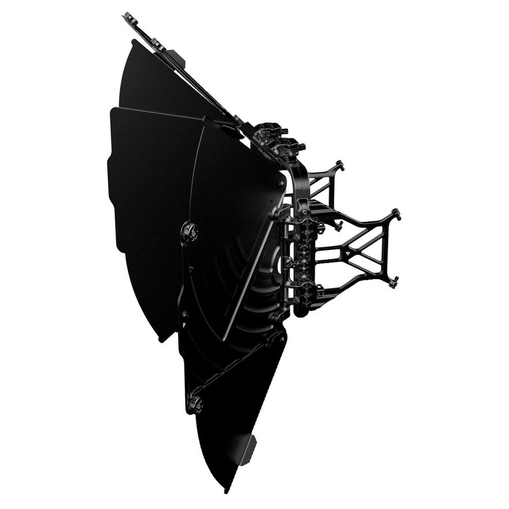 The Flag System from Wooden Camera includes the cage extension for the Fujinon Duvo HZK 25-1000mm box lens and three flags with NATO clamps. The system allows you to mount flags around the top and sides on the front of the Fujinon Duvo HZK 25-1000mm box lens to provide protection from glare and flaring into the lens. The extension mounts onto the front top and sides of the lens using four 1/4"-20 screws and provides multiple NATO rails to mount the three included flags around the lens opening.