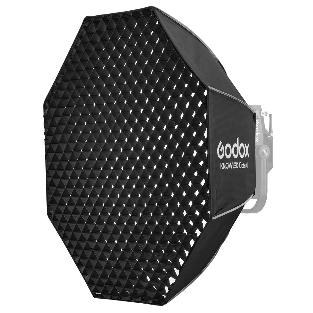 This 120cm KNOWLED Octa Softbox from Godox is designed for the brand's P300R LED Light Panel. The softbox renders a soft, flattering quality of light, while maximizing the output via its reflective, silver interior. Godox includes a 40° grid which provides directional control that allows you to light specific areas of your subject.