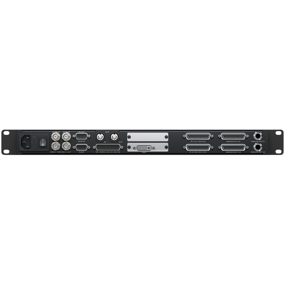 Expand the I/O of your DaVinci Resolve 17 system with the Blackmagic Design Fairlight Audio Interface, a 1 RU rackmount unit packed with analog and digital connections, preamps for mics and instruments, sample rate conversion, and sync at any standard frame rate. Equipped with 24-bit / 192 kHz AD/DA converters, extensive synchronization and control I/O, it exhibits high-grade sonic performance. The Fairlight Audio Interface is optimal for professional postproduction engineers in commercial studios and mixing stages.