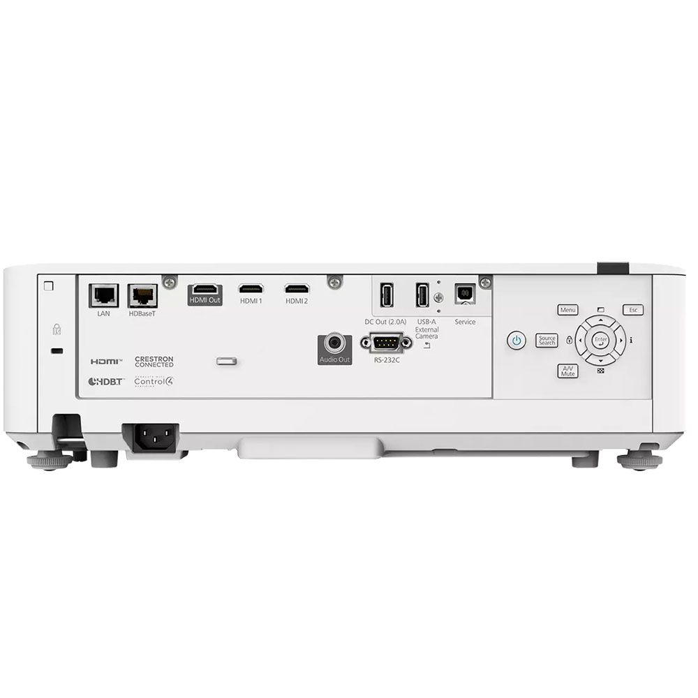 Wide lens shift with 1.6x optical zoom, built-in edge blending and geometric correction tools via on-screen menu or Epson Projector Professional Tool.