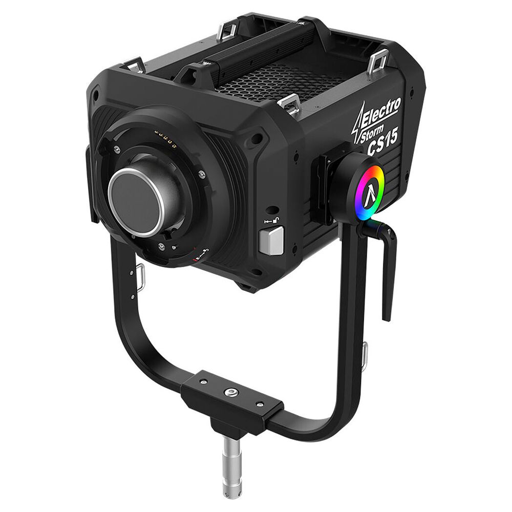 Designed with power and durability for film and television professionals, the Electro Storm CS15 RGB LED Monolight from Aputure is a full-color point-source fixture offering 1500W of ultra-high color quality. The CS15 provides 2000-10,000K CCT and tint control, dual accessory mounts, advanced connectivity options, and a rugged IP65 dust- and weather-resistant construction to withstand demanding filming environments. Made with optimization and versatility in mind, filmmakers and lighting technicians will appreciate this powerful, color-accurate, RGB fixture that is ideal for illuminating large areas. This CS15 version comes with a US plug. A robust flight case is also included for storage and transportation.