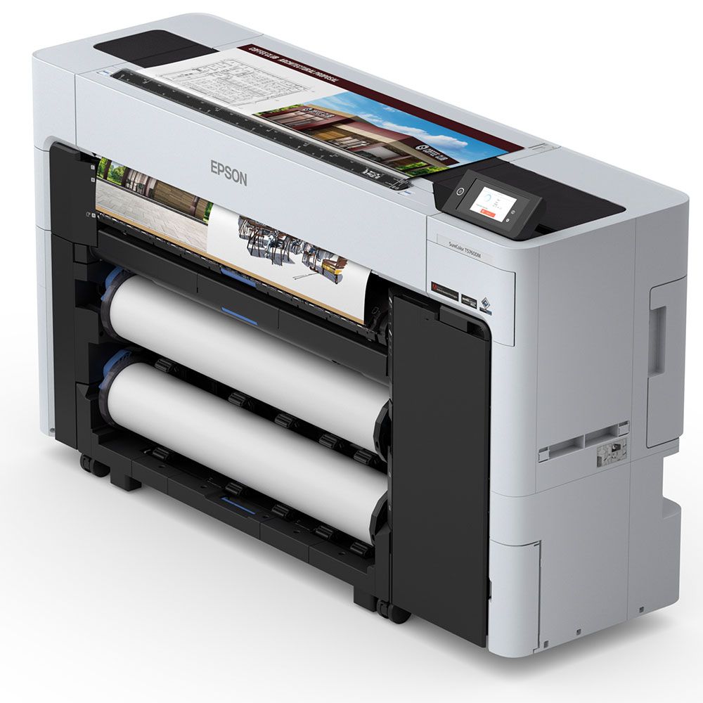 The SureColor T5760DM is a multifunction technical printer that combines an extremely compact footprint with flexible media handling, a high print speed and a large format scanner for print, scan and copy functionality. It is designed for companies who want to produce colour drawings, posters and POS material in sizes up to A0 quickly and efficiently. This model is particularly suited to construction, retail and print-4-pay applications. It uses 6 inks that come in large cost-effective cartridges with an additional Red to enhance the colour gamut. Integrated high-speed hardware-based Postscript enables fast and accurate image reproduction via drag-n-drop from the desktop or direct from a USB device. It features dual-roll support with automatic loading and exchange. The 2nd roll can also able to be used as an Auto Take Up for Roll-To-Roll production with offline processing.