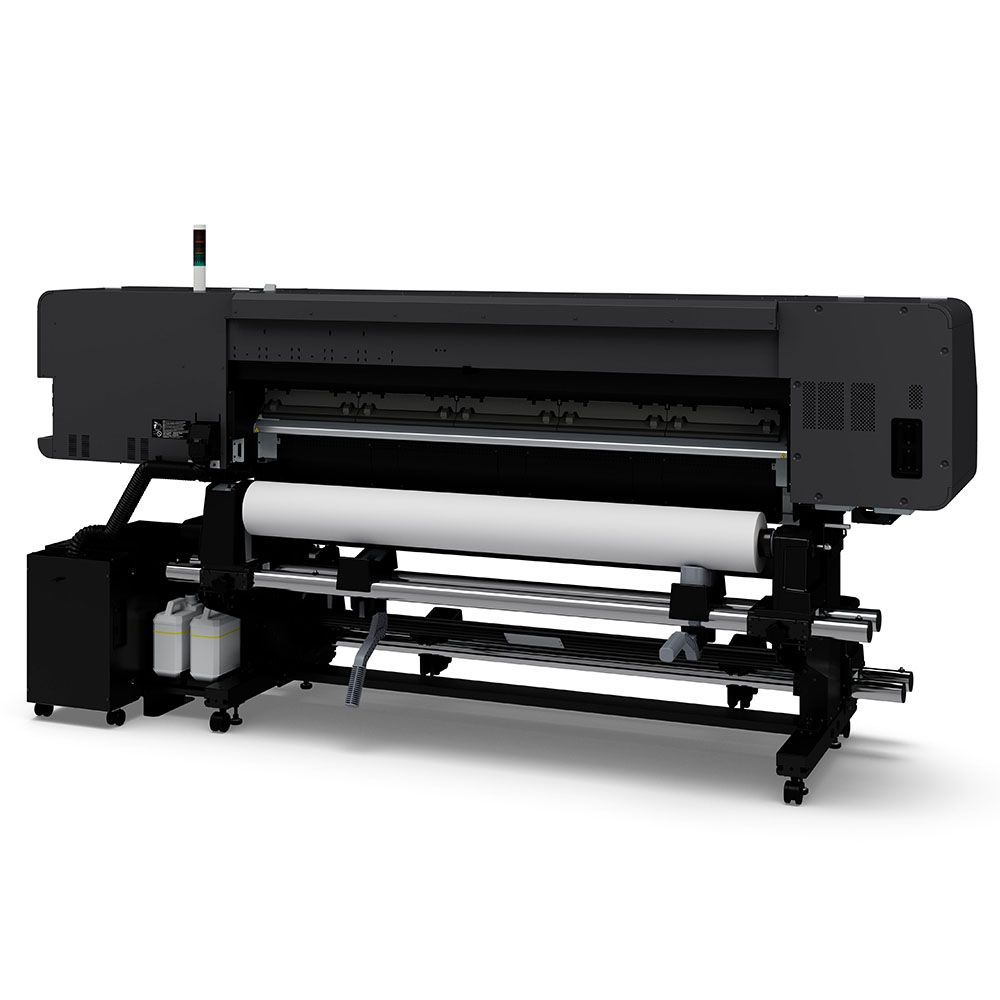 The printer uses Epson’s latest Resin ink technology. Designed to compete against Latex, it features a similar aqueous (water-based) construction with a formulation that meets the highest ecological and OH&S certifications while offering enhanced scratch resistance and a lower curing temperature. The reduced temperature enables compatibility with an enhanced range of media including delicate films and fabrics. It suits a wide range of applications including durable indoor/outdoor signage, banners, wall coverings, decals, film, and custom fabric. The ink dries quickly for maximum productivity and rapid job turnaround.