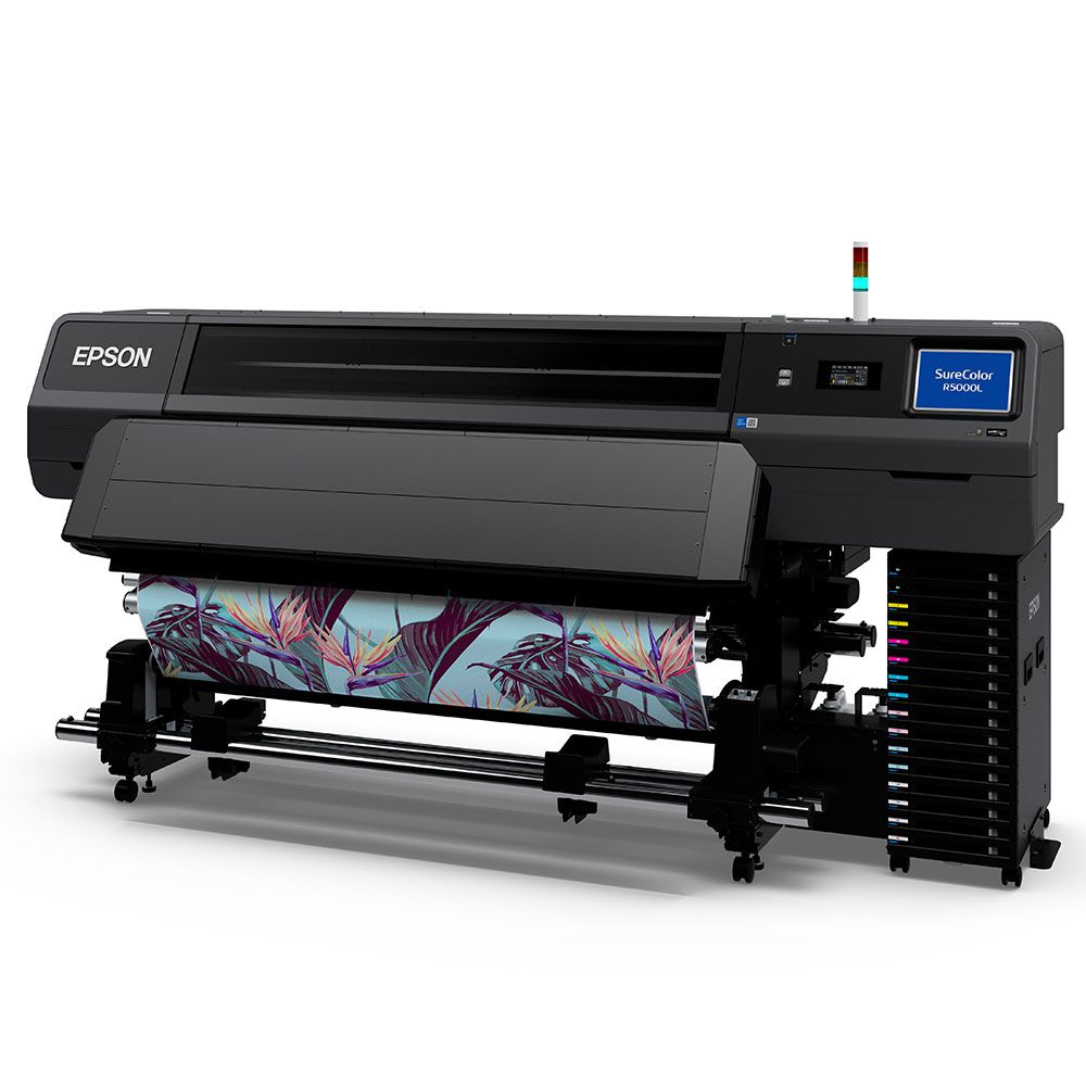 The SureColor R5000L is designed to produce signage, décor and promotional material. It uses aqueous (water-based) ink that is similar to Latex but formulated for enhanced scratch resistance and a lower curing temperature. Enhanced print durability is matched with enhanced mechanical reliability and a reduced running cost. Lower curing temperatures enable reduced power consumption and wider media compatibility. When applied with Epson print head, image processing and media handling, it enables output with superior consistency and quality. Applications include durable indoor/outdoor signs, banners, wall coverings, decals/stickers, film, and even custom fabric.