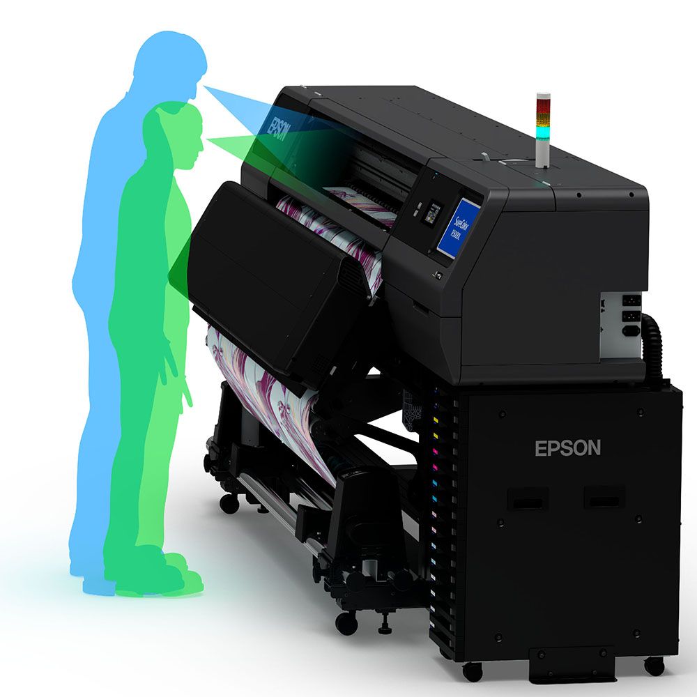 One or more printers can be managed by a single operator. An integrated media lifter and a platen release, with access from both the front and rear, ensures that loading is easy. Media setting can be completed quickly with auto skew correction and downloadable EMX profiles. The printer features a see-through platen cover with integrated lighting and a large LCD touch control panel. It ships with Epson Edge Dashboard for desktop management and incorporates an industrial-style signal lamp with audible alarm for operation in large workspaces.