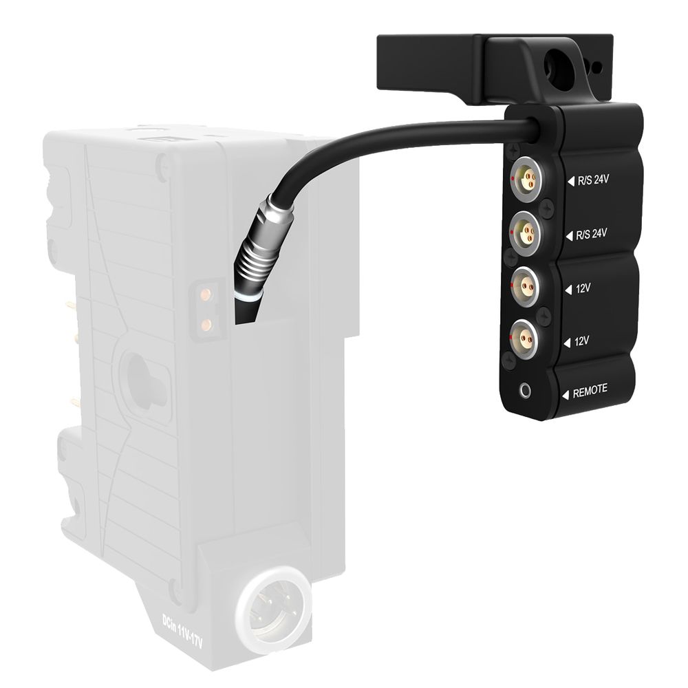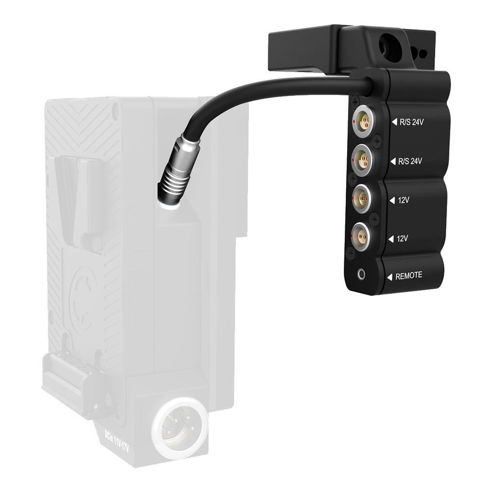 Ergonomically crafted out of aluminum, the module is designed to mount on the side of the camera in alignment with the native I/O, ensuring a streamlined and user-friendly configuration. Its connection to the remote and CTRL ports enables loop-thru functionality and R/S start-stop functions on the 3-pin 24V connections, providing enhanced control and convenience.
