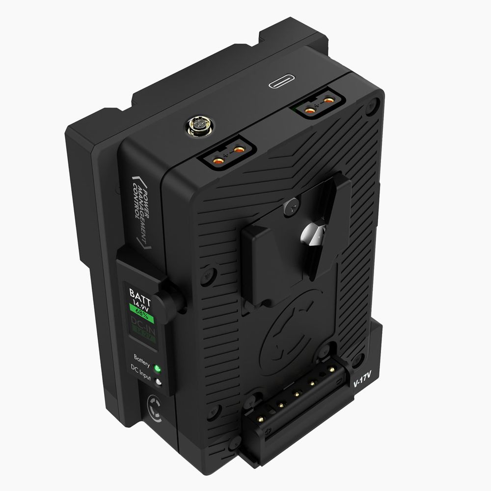 Power Management Control V-mount to V-mount Plate adapter. Works with Sony Burano and Sony Venice HRS 4pin 12v output, USBCPD output, with 2 ptaps and Screen Display, DC 11-17v 4p XLR input for Hotswap. #CSXBUR-IO sold seperately