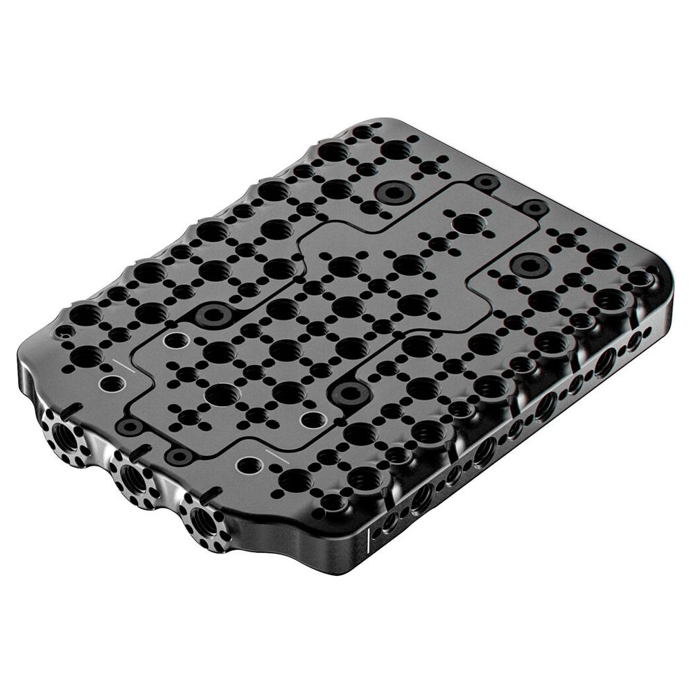 Mount accessories on top of your Sony BURANO cinema camera with this Top Plate from Wooden Camera. The two-piece plate attaches to the top of the camera using four included screws and provides 1/4"-20 3/8"-16 ARRI-style anti-twist accessory threads for extension arms and handles. A component in the center of the plate can be removed to allow attaching the PWX-FX9 top handle with full communication with the camera. It can also be used with the optional Wooden Camera Front Dual-Rod Clamp, left and right side plates, and EVF System.