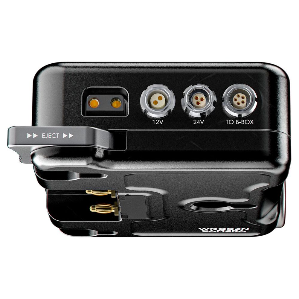 Designed to fit between a battery and the camera's battery mount, the D-Box has a male V-mount on the camera side and a female Gold mount on the other, internally passing power to the output connectors and to the camera. The D-Box's DC input port enables you to connect a power supply, thus maintaining power to both the camera and its accessories during a battery swap.