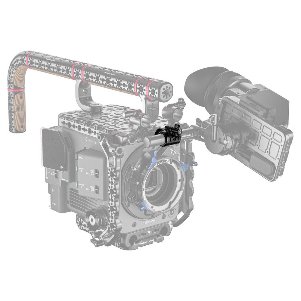 Mount a 15mm rod-mounted accessory onto your rig with this Universal Single 15mm Rod Clamp with 3/8"-16 Anti-Twist Screw Mount from Wooden Camera. This compact clamp features a single 15mm rod port, and on the other side is a 3/8"-16 mounting screw with four anti-twist locating pins. The rod clamp is secured using a locking thumbscrew. It can mount onto your camera cage or rig to mount an EVF, a follow focus motor, a flag, or other accessory.