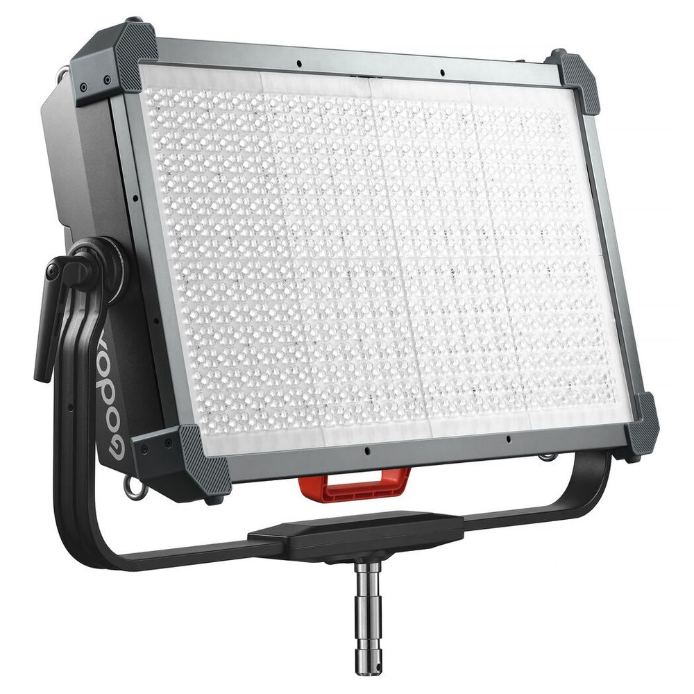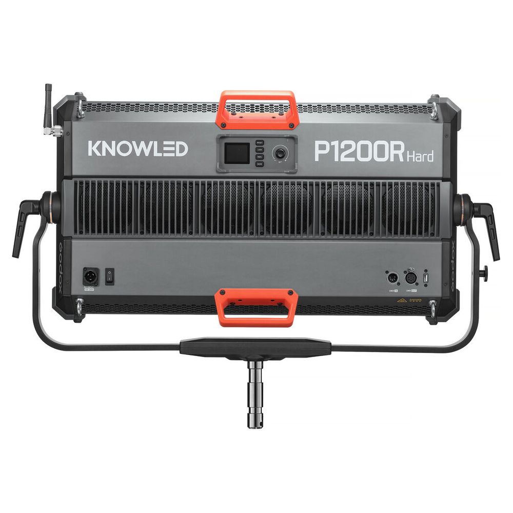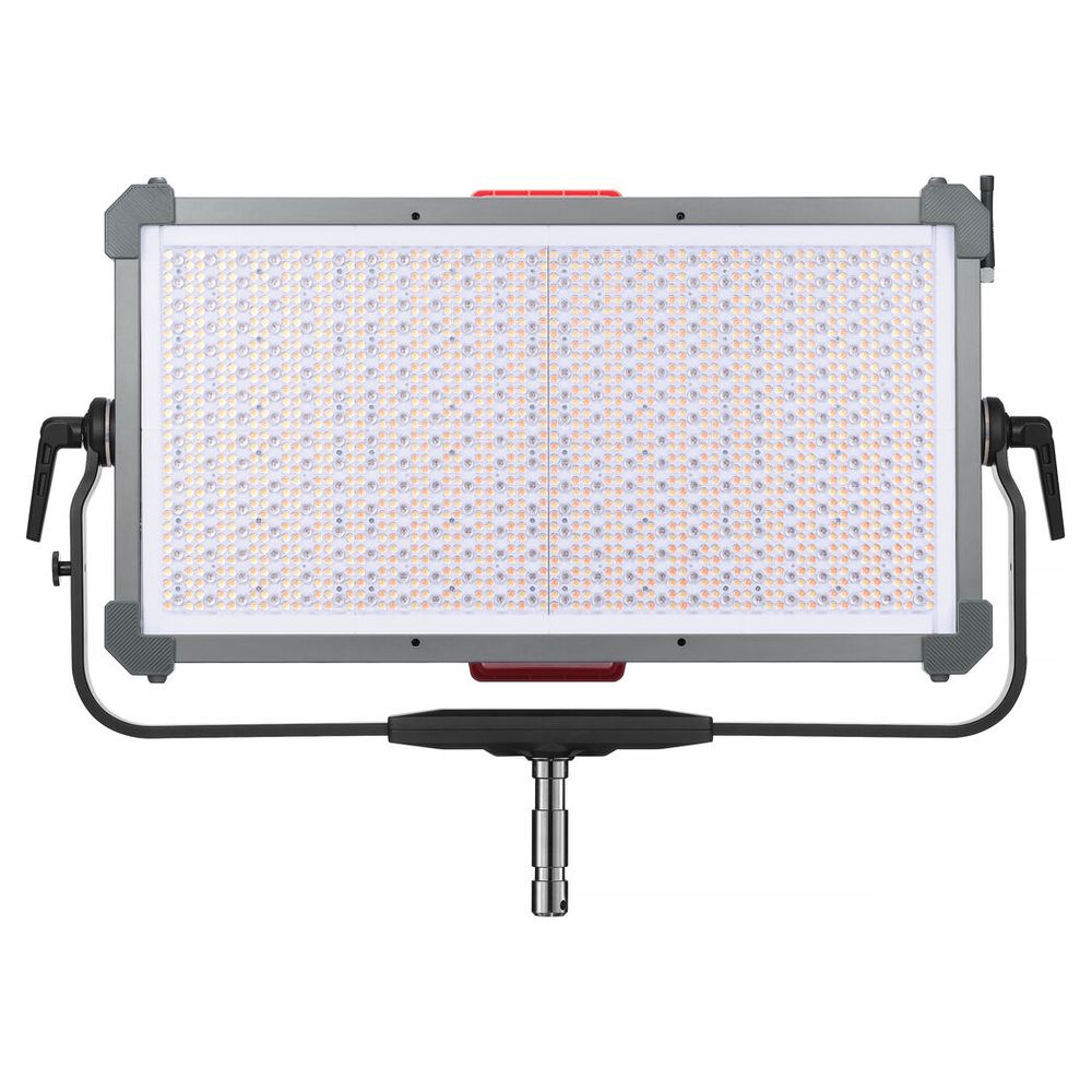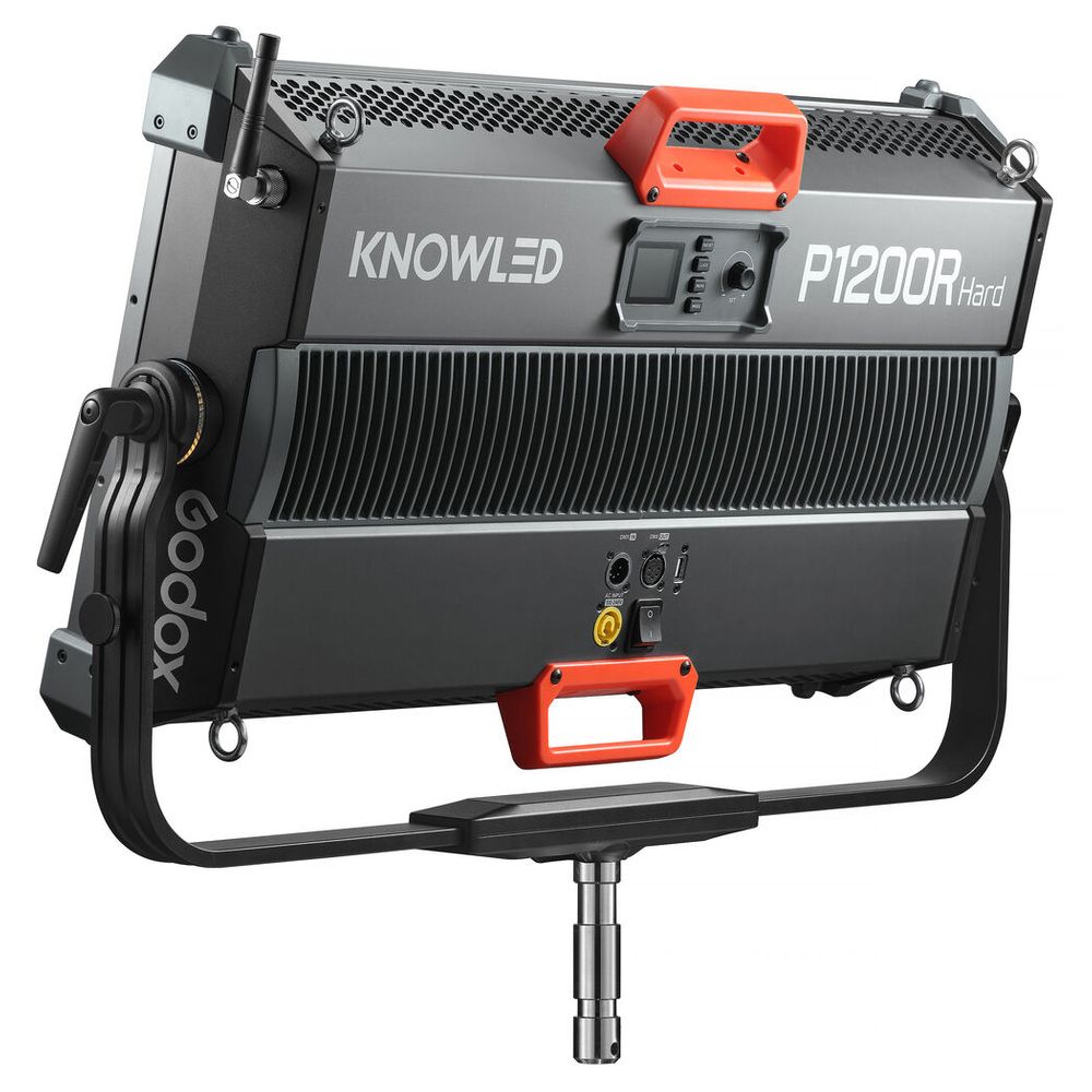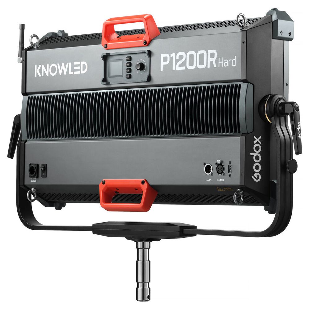 As Godox pushes the range of its high-powered LED series, the KNOWLED P1200R Hard RGB LED Light Panel delivers strong output combined with powerful features and advanced control methods. Designed for those who operate in environments like large film and broadcast studios, the P1200R Hard's LED system produces a wash of extremely bright light with a suite of RGB settings. The panel offers a wide CCT range of 1800 to 10,000K, precise brightness adjustments, four dimming curves, a green-to-magenta shift, 14 lighting effects, and other convenient features. A variety of control methods allow you to adjust and control your light effortlessly and simplify your workflow. Measuring 83.39 x 60.6 x 16.99 cm (Fixture with Yoke) the P1200R Hard is significantly larger and brighter than the P600R Hard unit. The panel supports 100 to 240 VAC, which makes it reliable for use anywhere in the world.