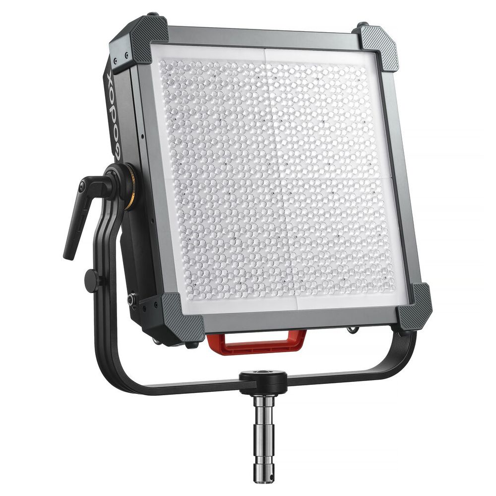 Look to the KNOWLED P600R Hard RGB LED Light Panel from Godox for a strong output combined with powerful features and advanced control methods. Designed for those who operate in environments like large film and broadcast studios, the P600R Hard's LED system produces a wash of extremely bright light with a suite of RGB settings. The panel offers a wide CCT range of 1800 to 10,000K, precise brightness adjustments, four dimming curves, a green-to-magenta shift, 14 lighting effects, and other convenient features. A variety of control methods allow you to adjust and control your light effortlessly and simplify your workflow. Measuring 57 x 49.61 x 11.91 cm (Fixture with Yoke), the P600R Hard supports 100 to 240 VAC, which makes it reliable for use anywhere in the world.