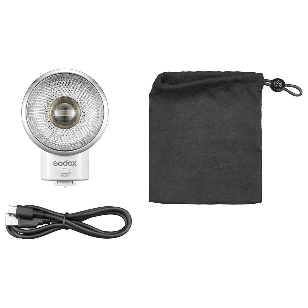- Built-in rechargeable battery offers up to 400 flashes on a full charge and comes with a USB-C to USB-A charging cable.