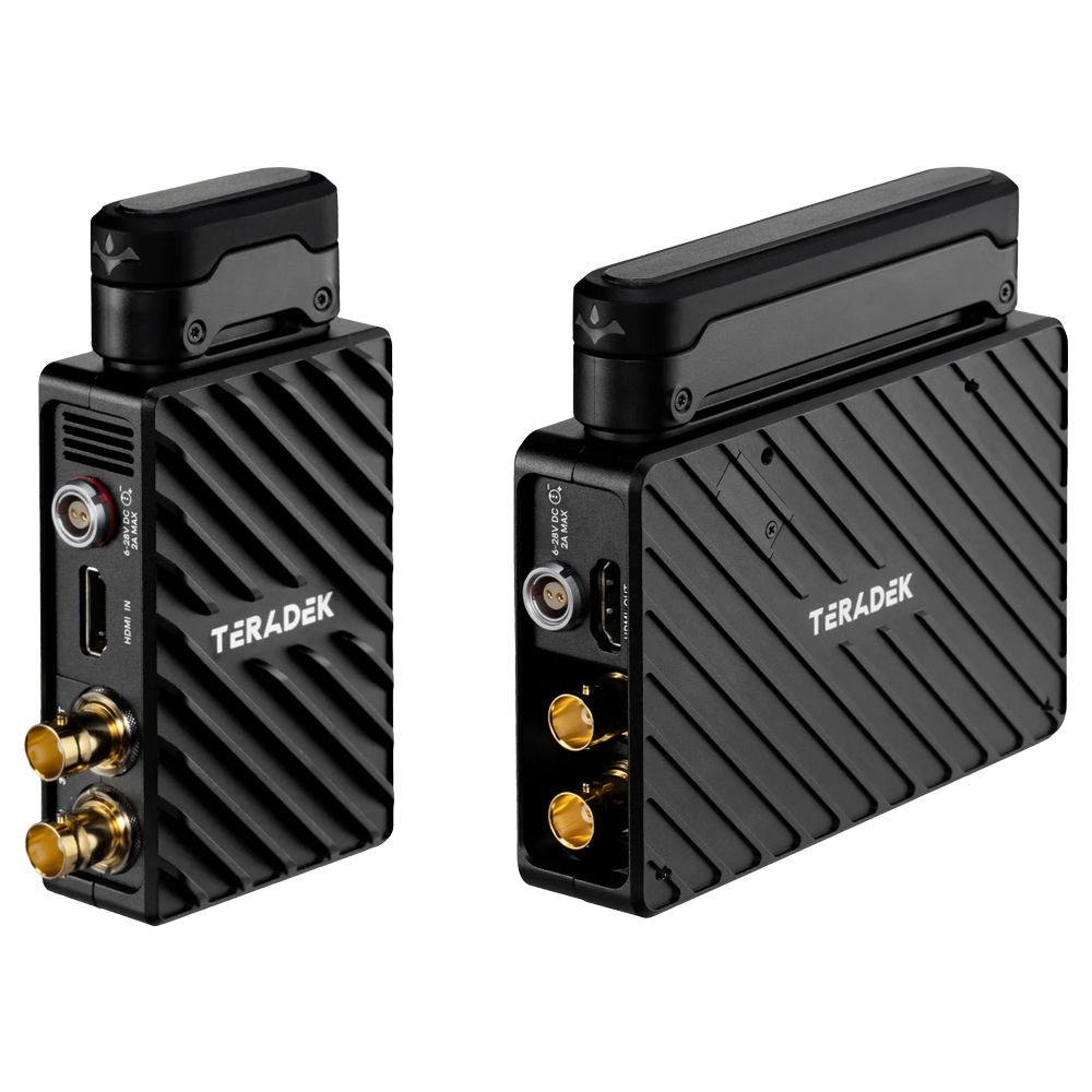 Transmit and receive lossless HD video at ranges up to 750ft line of sight with the Bolt 6 LT 750 3G-SDI/HDMI Transmitter/Receiver Kit with Internal Antennas from Teradek. This kit includes a wireless Bolt 6 LT 3G-SDI/HDMI transmitter and wireless Bolt 6 LT 3G-SDI/HDMI receiver, both with internal antennas, that support the 6 GHz wireless frequency, feature bright OLED displays, and can wirelessly receive up to UHD 4K30 video with 10-bit 4:2:2 HDR support.