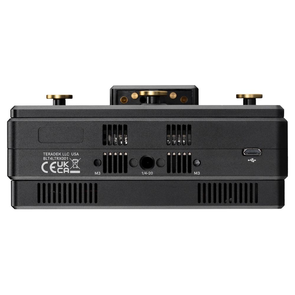 The antennas in this receiver are all tucked inside, producing a sleek, compact form. There are 1/4"-20 and M3 mounting threads to mount your transmitter on a variety of cameras, cages, or rigs.