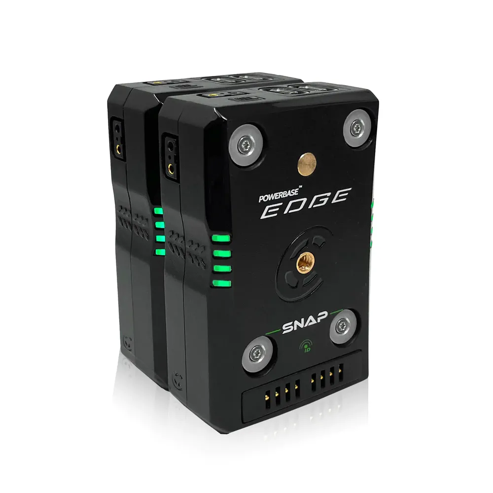 Power your camera and its accessories for a long shooting day with this V-mount Powerbase EDGE SNAP 49Wh Smart-Stacking Battery Pack from Core SWX. This battery has a maximum continuous draw of 6.54A, a 49Wh capacity, and output voltage of 14.54V, and it can be linked with other packs using strong magnets to charge multiple SNAP batteries simultaneously using a single PD Pro charge input. It can be mounted onto a camera, cage, or rig using 1/4"-20 thread or an optional quick release plate.