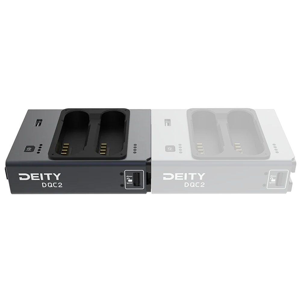 The perfect companion for sound mixers in the TV/Film industry working in the field or in the studio, the Deity Microphones DQC2 a reliable and efficient, 2-bay battery charger that can help streamline your workflow, ensuring your smart batteries stay charged and ready to perform throughout the day. The DQC2 can charge two Deity S-95 batteries or other eSmart 2054-style batteries at the same time. Equipped with dual USB-C 50W power inputs (allowing for up to 100W total power), it can fully charge the batteries in less than 3 hours. The dockable design supports docking up to three DQC2 chargers to charge six eSmart 2054-style batteries simultaneously.