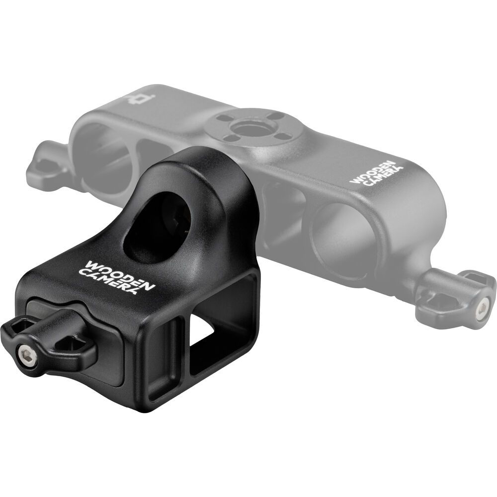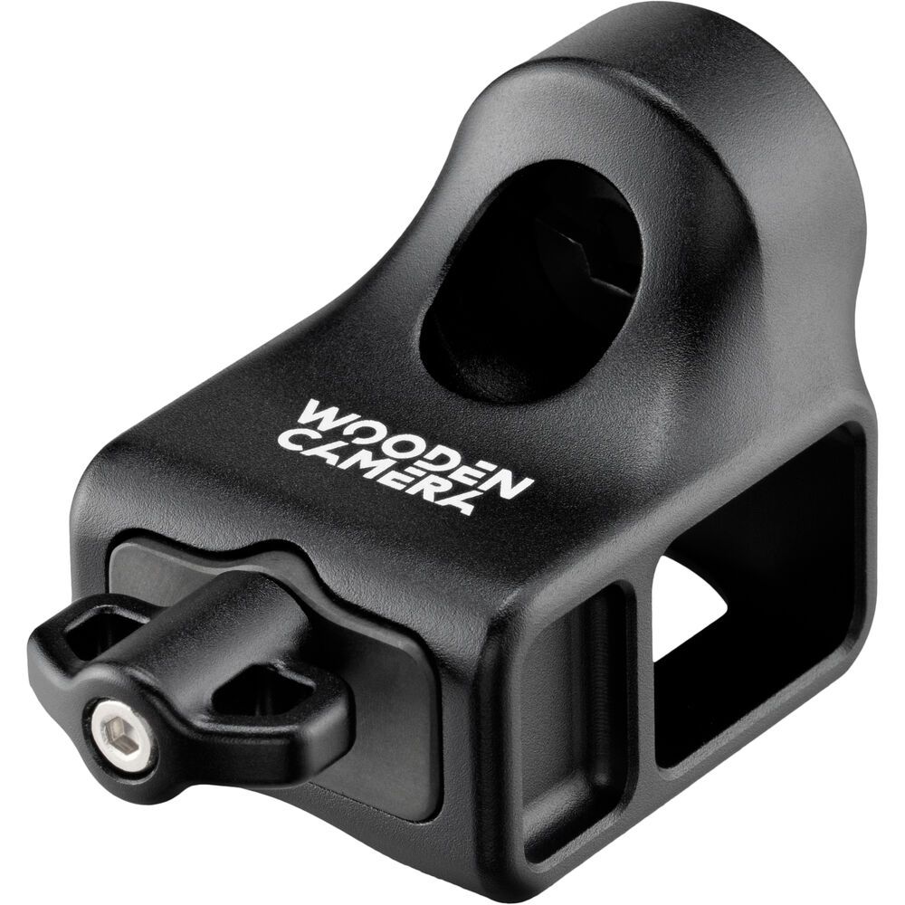 The Viewfinder Adapter Bracket for ARRI ALEXA 35 VMB-5 Viewfinder Mounting Set from Wooden Camera mounts via an integrated 3/8"-16 screw with locating pins. Compatible with the Ultra Handle and the Universal Dual Rod Clamp, the versatile and low-profile mounting solution weighs only 2.6 oz, facilitating mounting without adding significant weight to your camera rig.