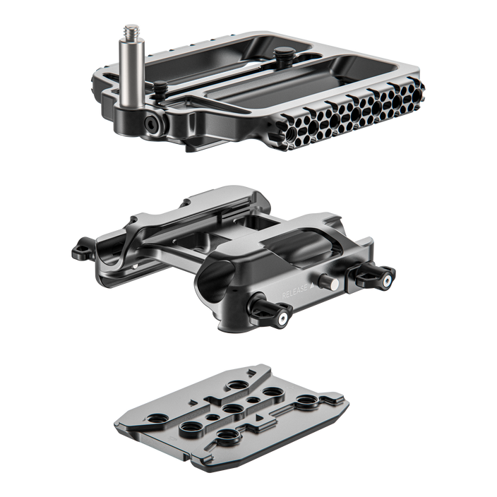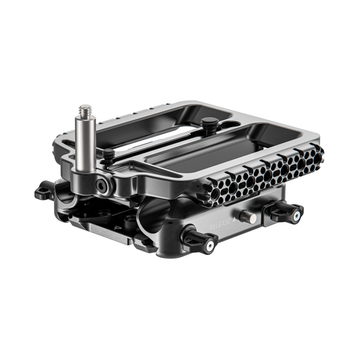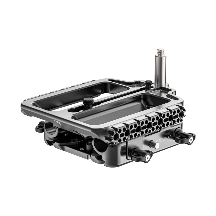 An integrated, adjustable slide rail in the center allows you to fine-tune your camera position when using a lens mount adapter. On the bottom, there are multiple 1/4"-20 threads to add a variety of accessories, such as a shoulder plate or other mounting plates, without requiring a bridge or baseplate. On the sides, there are multiple anti-twist 1/4"-20 threads for additional side-mount accessories.