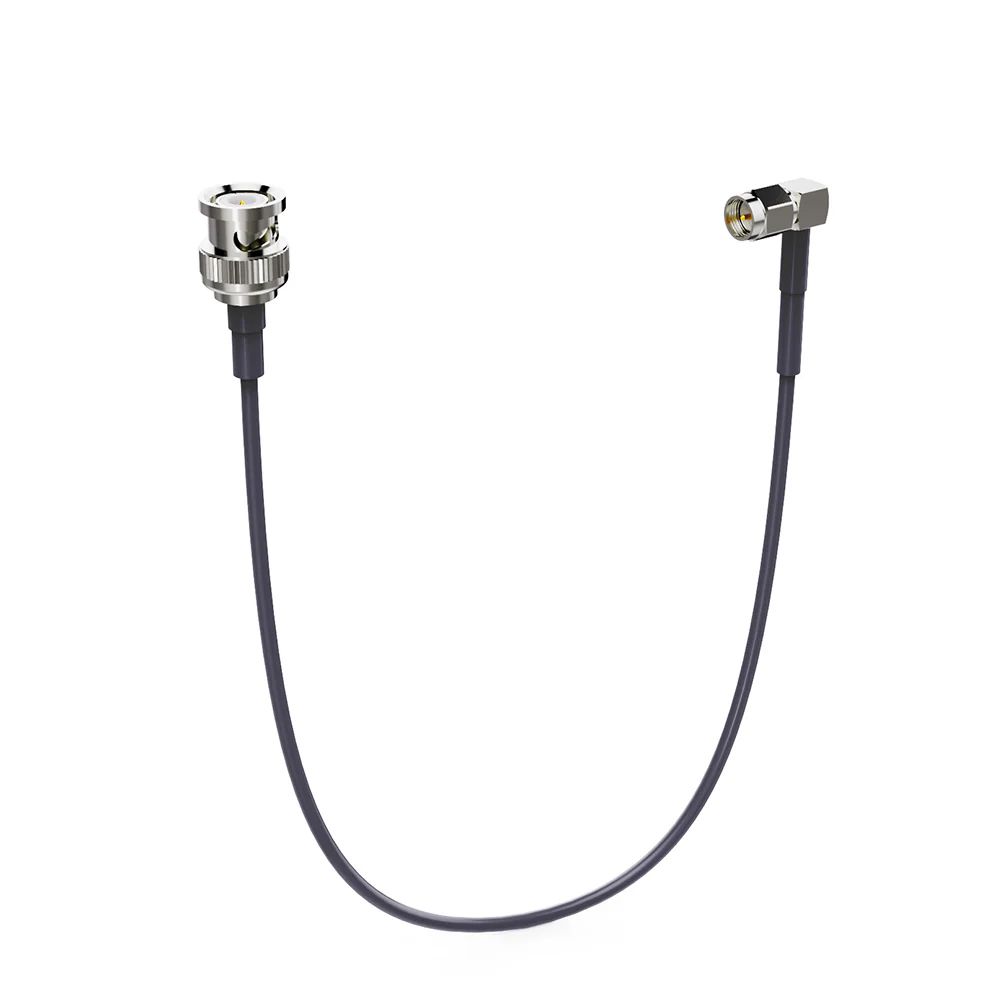 Compatible with all brands of wireless microphone receivers and RF antennas, this 45cm cable is terminated with a right-angle SMA male connector on one end and a straight BNC male connector on the other.
