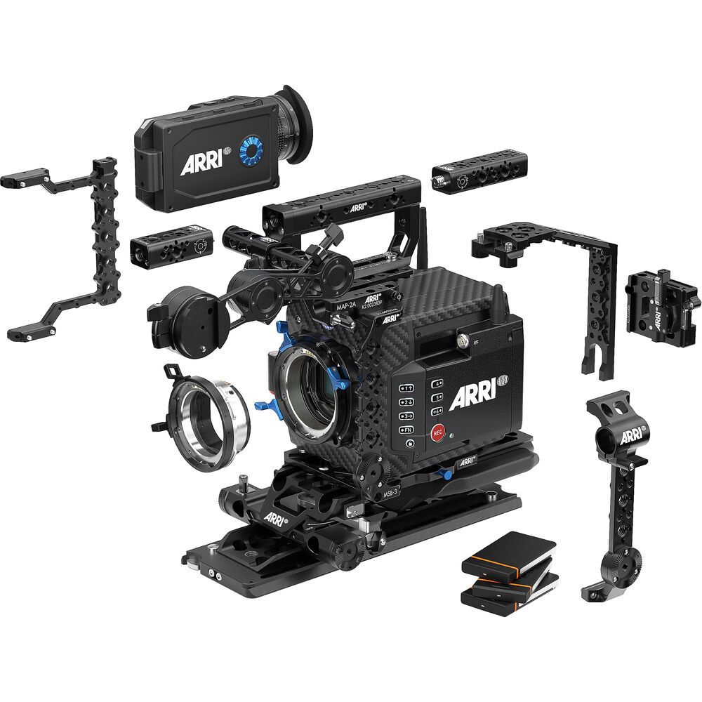 The ARRI ALEXA Mini LF Production Set (LPL) pairs the LPL-mount, large-format camera with an MVF-2 Multi Viewfinder, a PL-to-LPL lens adapter, a 19mm studio baseplate system, an array of cage-type support components, and three 1TB Codex compact drives. The ALEXA Mini LF offers native 4K recording in three sensor modes, with ARRIRAW or ProRes recording in LF Open Gate, LF 16:9, or LF 2.39:1 mode. The ALEXA LF combines large-format resolution with an optimal pixel size for excellent image quality, producing vivid, nuanced images with natural skin tones and smooth bokeh.